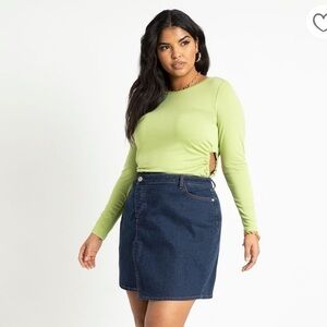 Grab this fun Eloquii Long Sleeve Top with Ruched Side Cutouts in Herbal Garden Green today!