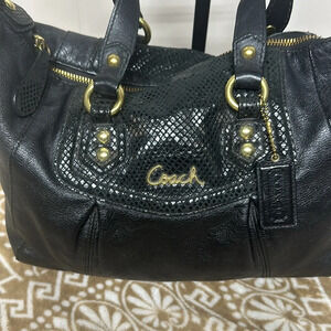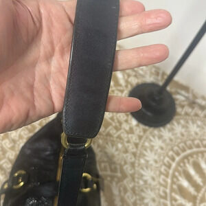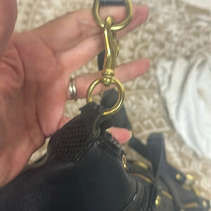 Elegant black leather with gold accents. Features signature Coach logo. Perfect for any occasion.