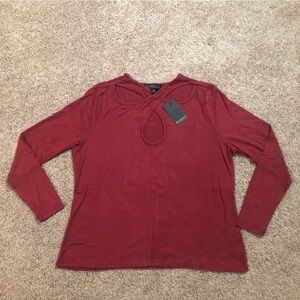 Pictured above is a new Eloquii Crossover Cutout Neckline Top in Burnt Russet Red size 18/20.