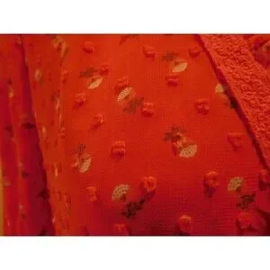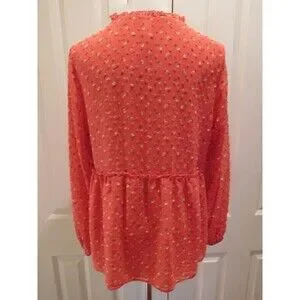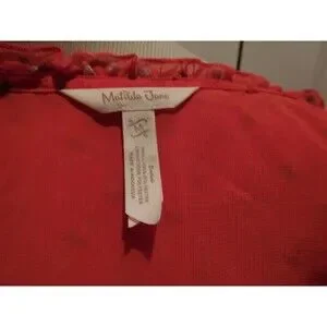 DARLING MATILDA JANE "MUST BE LOVE" RED TUFTED DOT CROSSOVER BLOUSE M. BUST IS 42" AROUND AND LENGTH IS 26". EXCELLENT CONDITION!