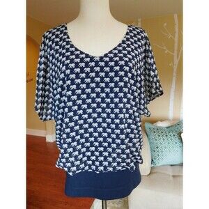 Darling Cabi# 5345 "Parade Blouse" Elephant Print Navy/White Overlay Top SZ Small. Bust is 38" Around and Length is 24.5". Blouse is designed to be Oversized and Flowy. Worn Once and in Excellent condition! Retail Price $89.00.