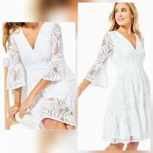 Lilly Pulitzer Cecelia White Lace Vneck Bell Sleeve Midi Dress