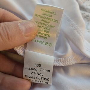 Size 0, white lace, with flowy bell sleeves, a swishy skirt, and wrapped v neckline. Lace has a pretty floral pattern as well, and dress is lined.