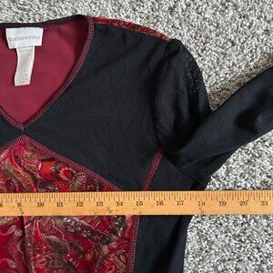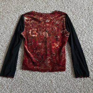 Worthington Womens Y2K Medium Floral Velvet & Black Long Sleeve V-Neck Top