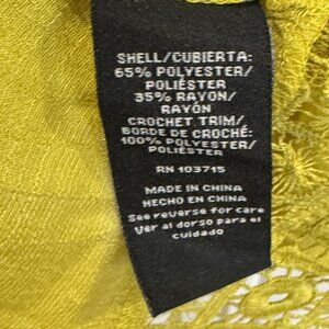 Zac & Rachel Chartreuse/ Mustard Yellow 3/4 Length Sleeves Crochet Lace Top EUC