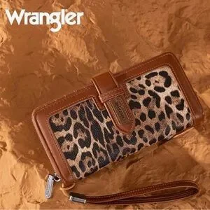 NWT Wrangler Brown Leopard Print Bifold Wallet with RFID Protection
