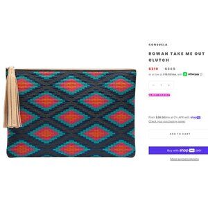Brand new/never used Consuela Rowan Take Me Out Clutch featuring a striking woven geometric front with vibrant color and a sleek black embossed floral back.