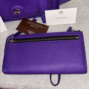 COACH Bleecker Mini Brooklyn Messenger Bag & Wallet Loganberry Pebbled Leather