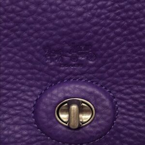 Plump pebbled leather with silver-tone hardware, i’m going to be very transparent with this bag. It is absolutely beautiful in pristine condition, Note: There is a faint linear mark on the front leather that appears to be a natural manufacturing characteristic of the hide. It is not a scratch or a scuff, but a part of the leather's unique texture. Includes dual top handles (approx. 3" drop) and a detachable long strap (approx. 22.5" drop) for shoulder or crossbody wear. Approximately 9" (L) x 6.5" (H) x 3.25" (W). Matching leather wallet/wristlet, original Coach dust bag, and care cards for both.