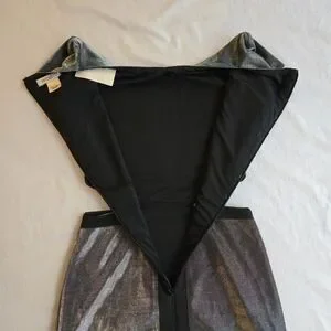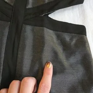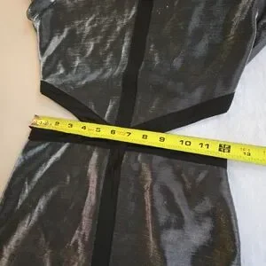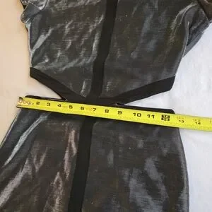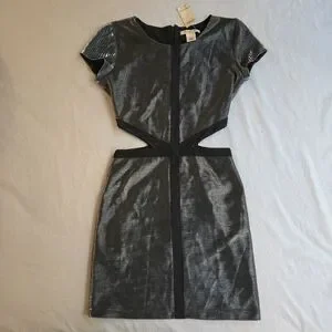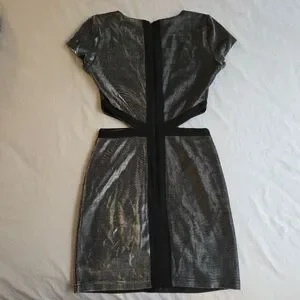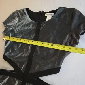 Arden B Metallic 90s Y2K Silver Cutout Black Trim Mini Dress NAT1