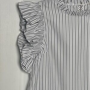 Jodifl Black White Striped Ruffle Cap Sleeve Blouse Top Medium