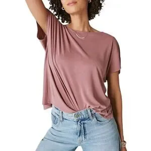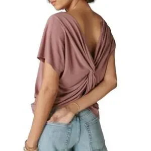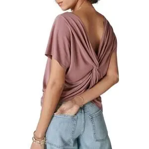 Lucky Brand Sandwash Twist Back Tee Rose Brown Modal Blend NEW Size Small