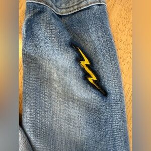 Ring Of Fire Men’s Jean Denim Jacket Retro Style Patches Size Medium