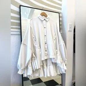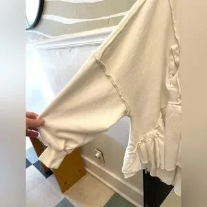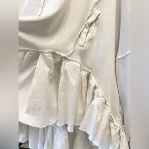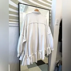 Free People oversized button down sweater high low with ruffles in white color