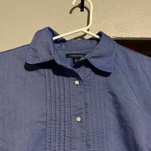 Lands End Womens Blue Pintuck Oxford Button Down Shirt Size 14 Long Sleeve