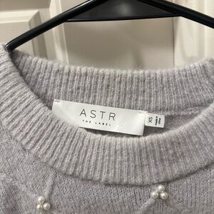 ASTR Women's Gray Pearl Embellished Sweater