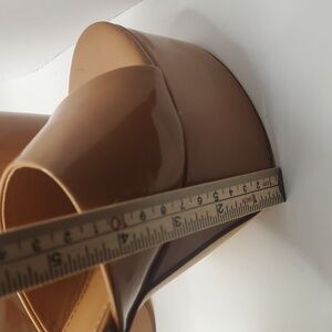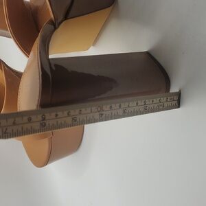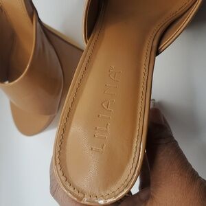 Liliana Womens Elegant Tan Patent Leather Platform Heels Sz 8 Slip On Mules Chic