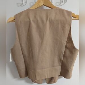 Elevate your style with this chic tan sleeveless vest. Perfect for layering and adding a touch of sophistication to any outfit.
