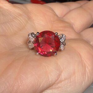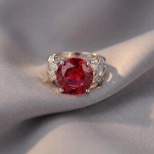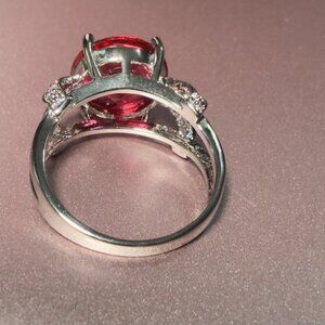 Sterling Silver Ring with Red Stone CZ Accents Size 7.25