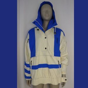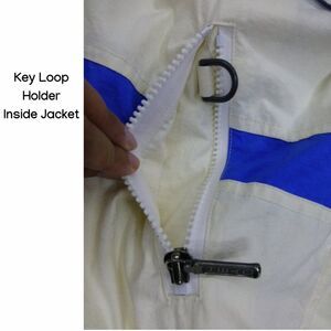 Description: Pre-Owned vintage. Small Sports at outer fabric but hardly noticable. Pull-Over style. Halfway zip in front. Zippers at sides. Zipper by Chest. One pocket has key loop holder inside jacket, keeps your keys secure.