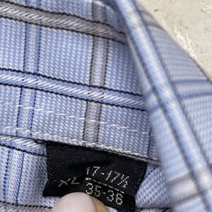 Hathaway Platinum 100% Cotton Men's Blue Plaid Dress Shirt 17-17 1/2, 35-36