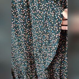 Embrace elegance with this floral high-low skirt. Perfect for any occasion, it features a beautiful green base with multicolored floral patterns. Pair it with your favorite top for a chic look.