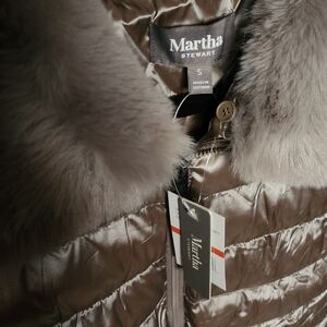 Martha Stewart's most unique puffer vest color, Moonstone Grey. Down filled with a removable faux fur collar. Beautiful, elegant, and classy. Full zip with zippered side pockets. Pockets are lined with a soft fleece. Classic fit and regular length. Not cropped at the waist. Regular length is hard to find these days. Made to fold compact for travel. So soft, warm and not bulky. You will get tons of compliments wearing this vest!