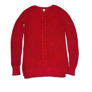 Tahari Red Sparkly Cable Knit Sweater Girls L 14