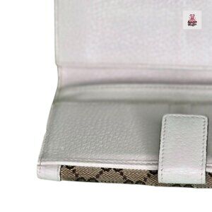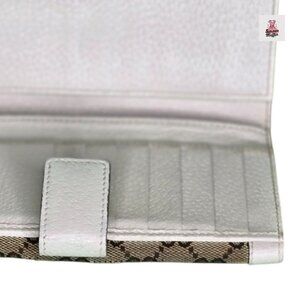 Gucci GG Canvas Continental Wallet with White Leather Trim
