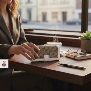 Design: features the classic beige/ebony GG monogram canvas with a distinctive white grained leather trim.