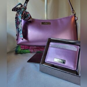 Kate Spade Purple Metallic Shoulder Bag & Card Holder