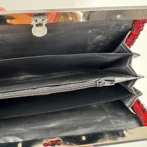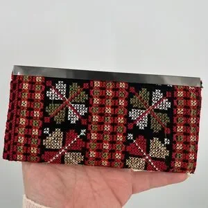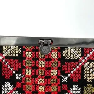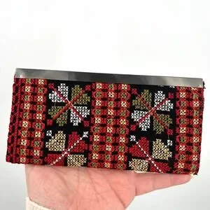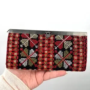 Vintage clutch bag wallet valentine heart cross stitch look acordian cottagecore