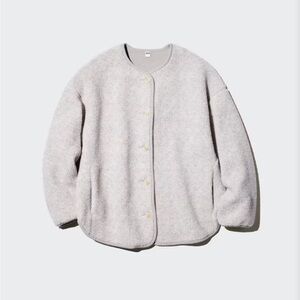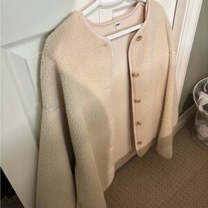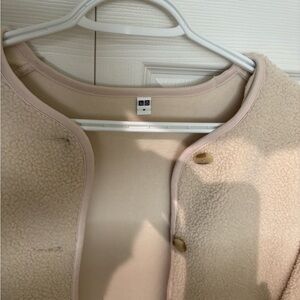 Stay cozy and stylish with this cream fleece jacket. Perfect for layering in cooler weather. From Uniqlo - Aritzia liner dupe.