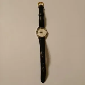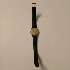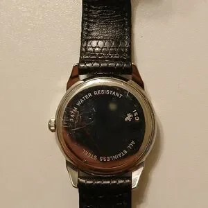 The watch is running. There is some debris and discoloration on the watch face. The wrist size is 5-6 1/2 inches. There are scratches on the crystal, case, and band. It's a casual preppy style. Please view the photos. Thank you!