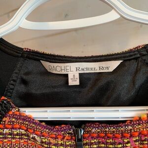 Rachel Roy | Orange & Pink Tweed Black Panel Zip Front Dress
