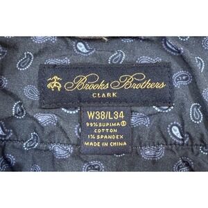 The Brooks Brothers Clark Chino Casual Pants in Men's Size 38x34 are a stylish and versatile choice for any occasion. Made from comfortable cotton knit fabric, these beige pants feature a classic chino style with a low rise and straight leg fit. They are accented with a zip and button closure, along with convenient slash pockets. Perfect for a summer outing, formal party, or casual day out, these pants are a timeless addition to any man's wardrobe. Easy to care for with machine washable instructions, these pants are a must-have for the modern man.