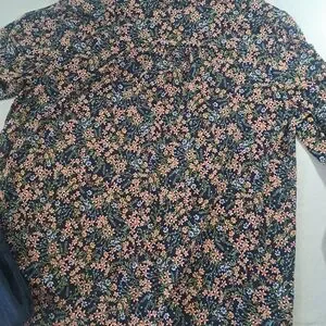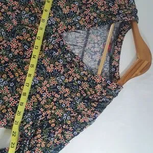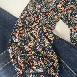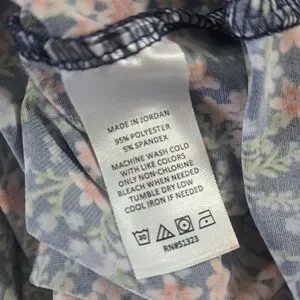 VINCE CAMUTO Navy Mini Floral print long sleeve Flowing and Stretchy LARGE