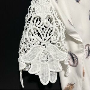 BOHO SHEILAY Feather Print Lace Sleeve Blouse | XXL