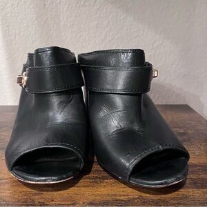 Coach size 7.5 “Orchid” Black Leather Peep Toe Clogs