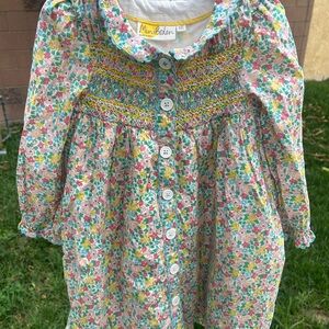 Vibrant dress with floral print. Features a charming collar and button details. Excellent condition no rips or stains.