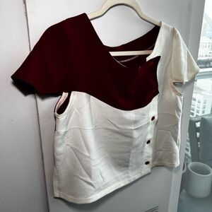 Burgundy and off white color block