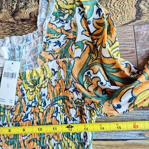NWT by Anthropologie $98 The Rayna Floral Smocked Top Long Sleeve Square Neck