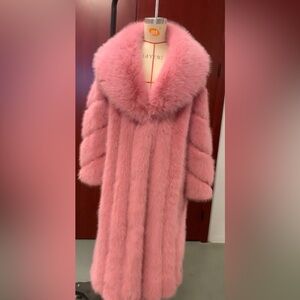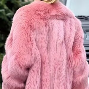 This coat is perfect to enhance your style with this luxurious full-length pink faux fur coat.