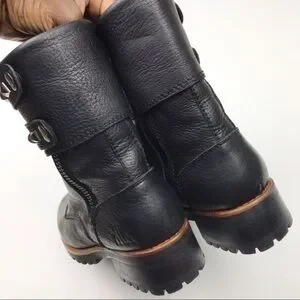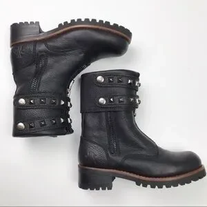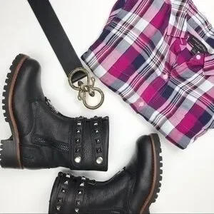 • KLR • Genuine Leather Boots / Booties / Ankle Boots • Color: Black • Studded Gunmetal Studs • Supple Full-grain Leather • Inner Side Zipper Closure • Red Stitching • Retails for $240 • Size: 6 • Heel Height: 1.75"