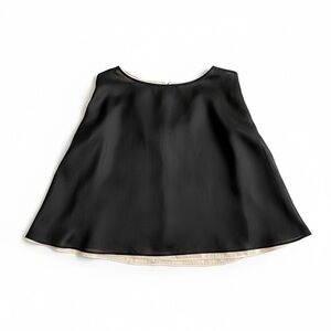 Elegant and eye-catching, this Dana Kay black and cream blouse features a delicate black sheer sequin overlay over a silky cream lining. Lightweight and dressy, it’s perfect for evening events, dinners, or parties.