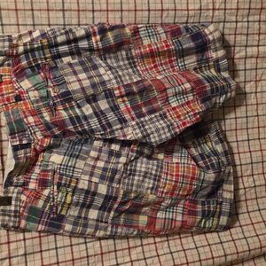 Vibrant patchwork plaid shorts with a mix of colors and 4 pockets by Polo by Ralph Lauren in size 34. Item is in good used condition with no holes and no stains.