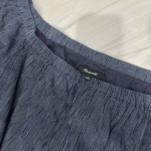 Madewell Women’s Navy Blue Pinstripe Off the Shoulder Bell Sleeve Dress Size 14