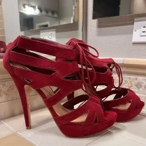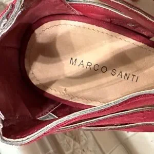 Chic red lace-up heels by Marco Santi. Perfect for adding flair to any outfit. Great pre-loved condition.