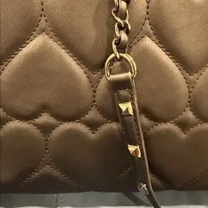 This BRAND NEW tote bag has 360 degree quilted hearts, trimmed in gunmetal with arm and shoulder handles!!