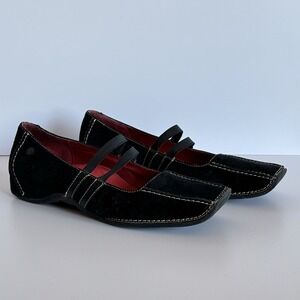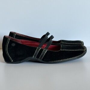 Aerosoles Womens 7.5M Black Suede Mary Jane Flats Elastic Comfort Shoes